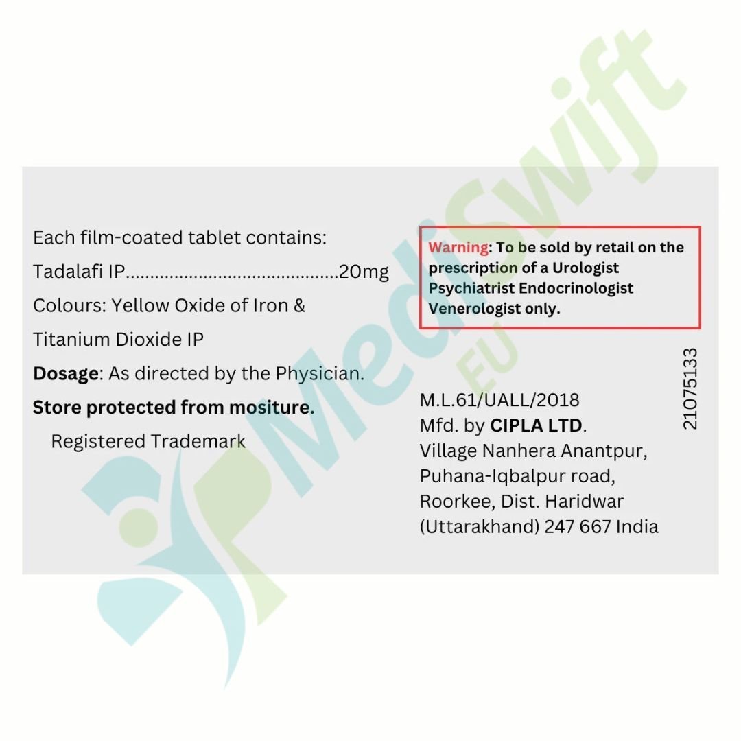Tadacip 20 mg is a trusted oral medication formulated to treat Erectile Dysfunction (ED) in men.