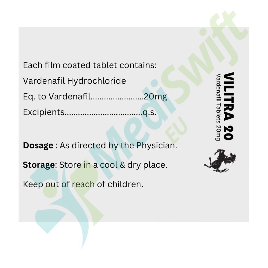 Each Vilitra 20 mg tablet contains 20 milligrams of Vardenafil as the main active ingredient.